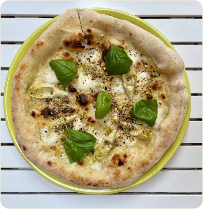 Mozzarella, Artichokes, HomeMade Pistachio Pesto, Extra Virgin Olive Oil