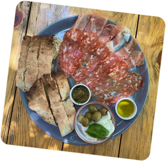 Italian Tomatoes, Mozzarella, ‘Nduja Spicy Sausage, Capers, Extra Virgin Olive Oil